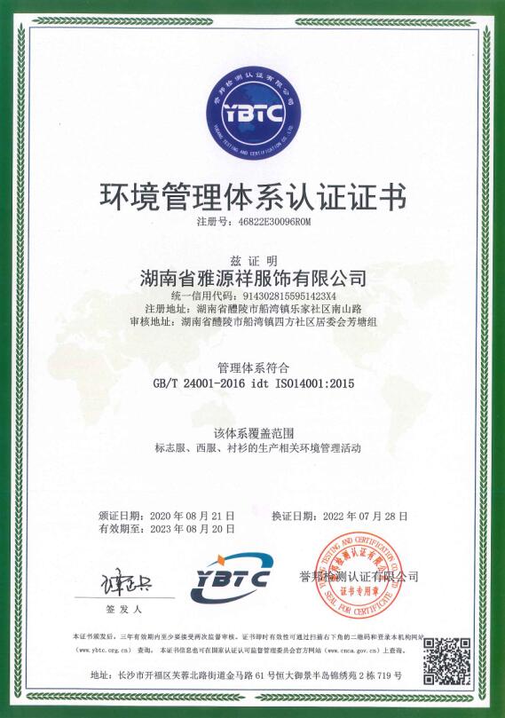 環(huán)境管理體系認(rèn)證證書
